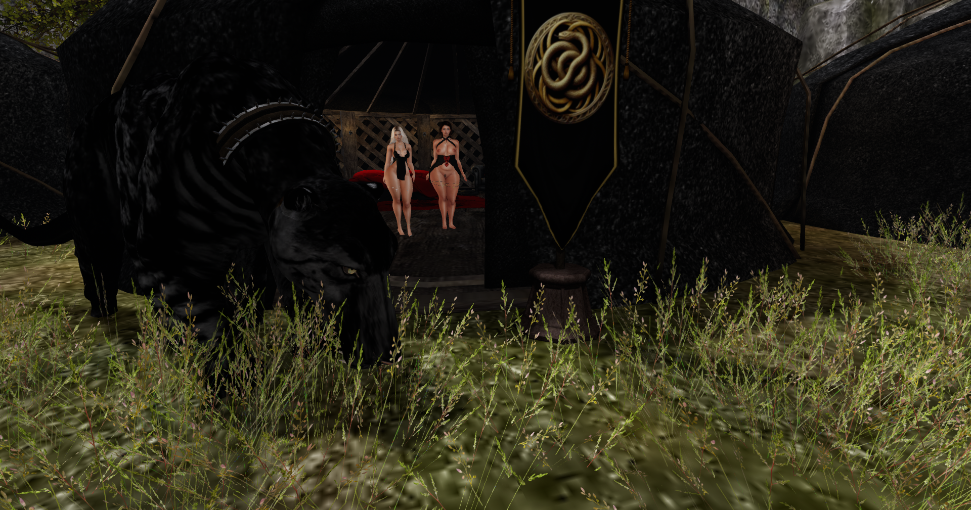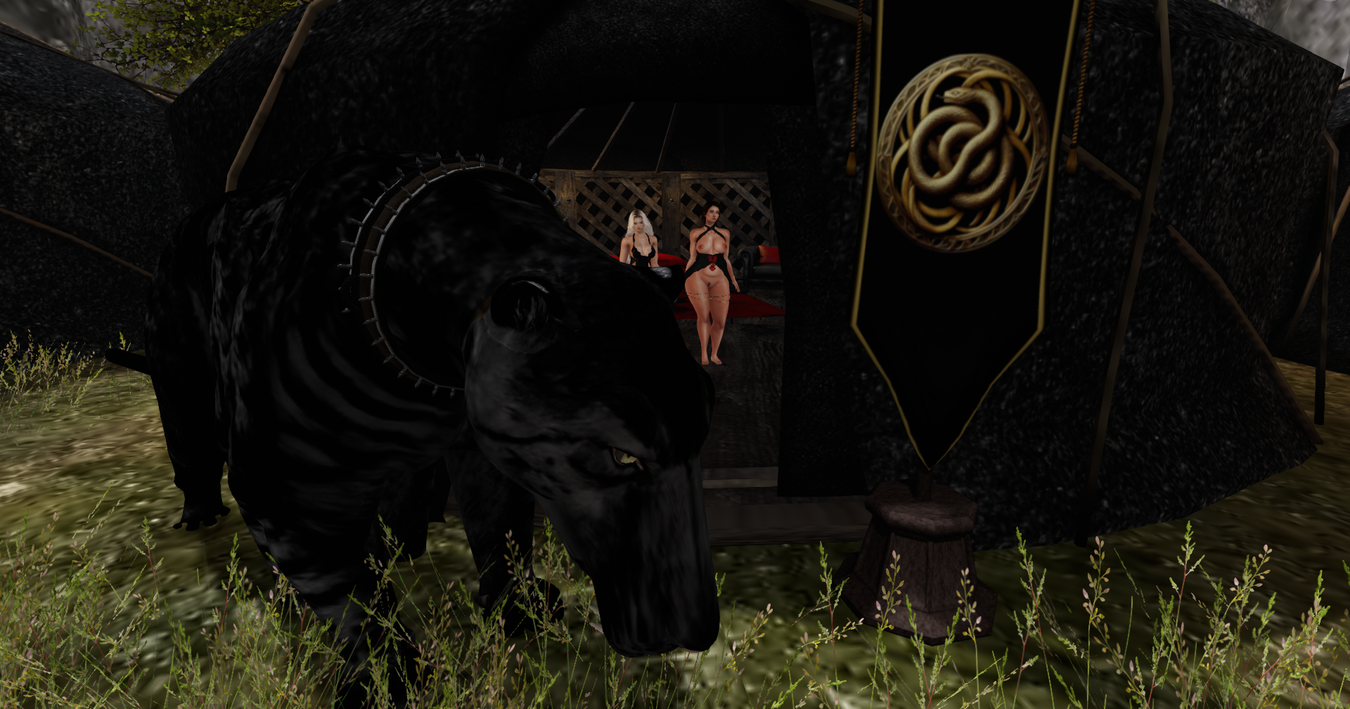 [10:32:45] IRunOnCoffee growled a soft warning to Franzia before she grew bored of her position. She raised herself up and moved over to Crow, going to shove her nose lightly into him in her way of greeting one of her alphas before hissing at Ember. Only to sit down and look expectantly at the tent, waiting for the slave girl to exit. She grumbled hungrily before settling next to Crow. Laying down once more as her head rested in the air, proud and regal!